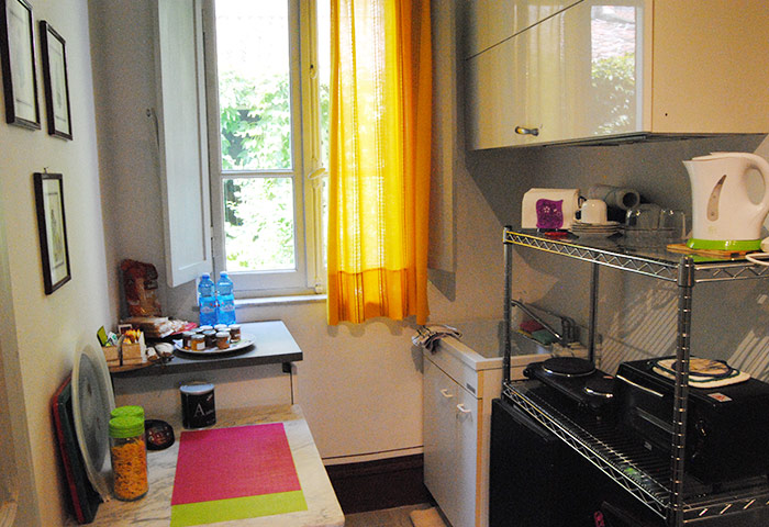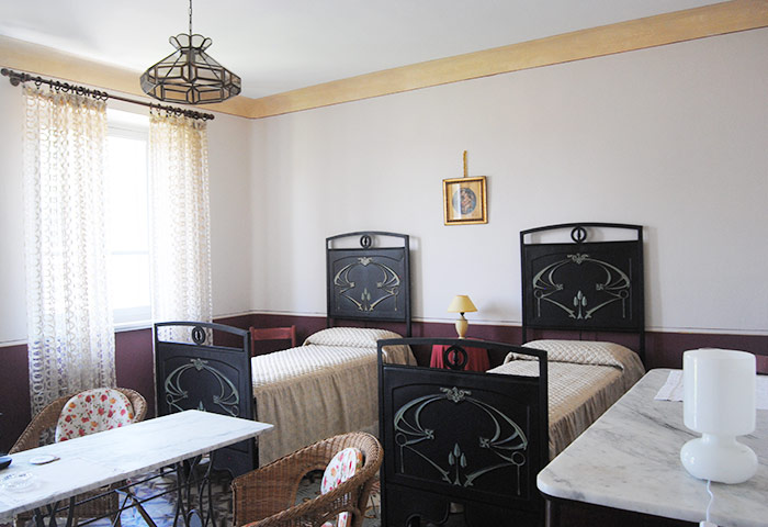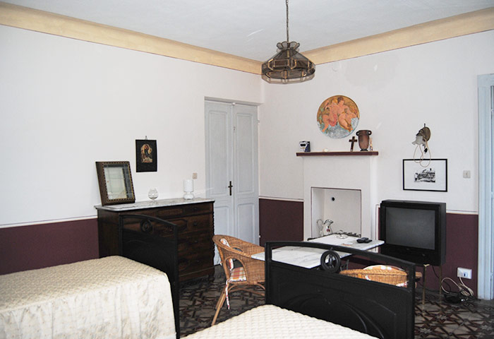 E' composto da un'ampia camera da letto con due letti singoli, antichi, in ferro battuto ed elementi decorativi, comò abbellito da intarsi in legno chiaro, poltroncine, camino con angolo relax e TV.