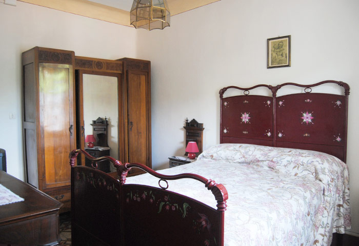 Di fianco altra camera matrimoniale, con letto in ferro battuto, lavorato con decori;il cassettone, i comodini e l'armadio fine '800 rendono gradevole l'ambiente ed adattabile alle esigenze degli ospiti.